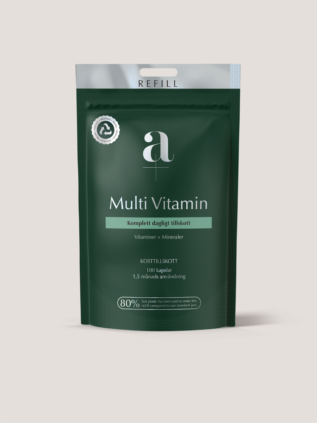 A+ Multi Vitamin i smidig och återvinningsbar refillpåse.