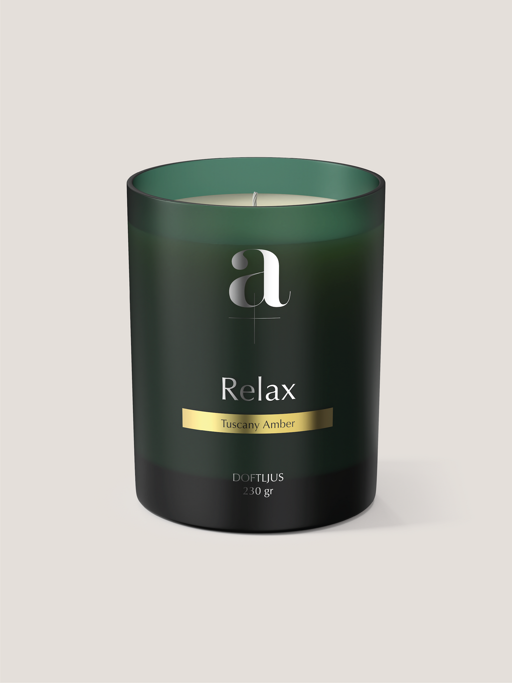 A+ Scented Candle Relax i doften Tuscany Amber består av naturliga ingredienser som är bra för både dig och miljön. Det tillverkas för hand i Stockholm och är helt veganskt, gjort på miljövänligt vax från sojabönor och kokos, helt fritt från paraffin, palmolja och andra tillsatser. Smältgraden för vaxet är endast 40 grader vilket möjliggör en jämn ytbränning och att ljuset dessutom fungerar bra att använda som massageljus.
