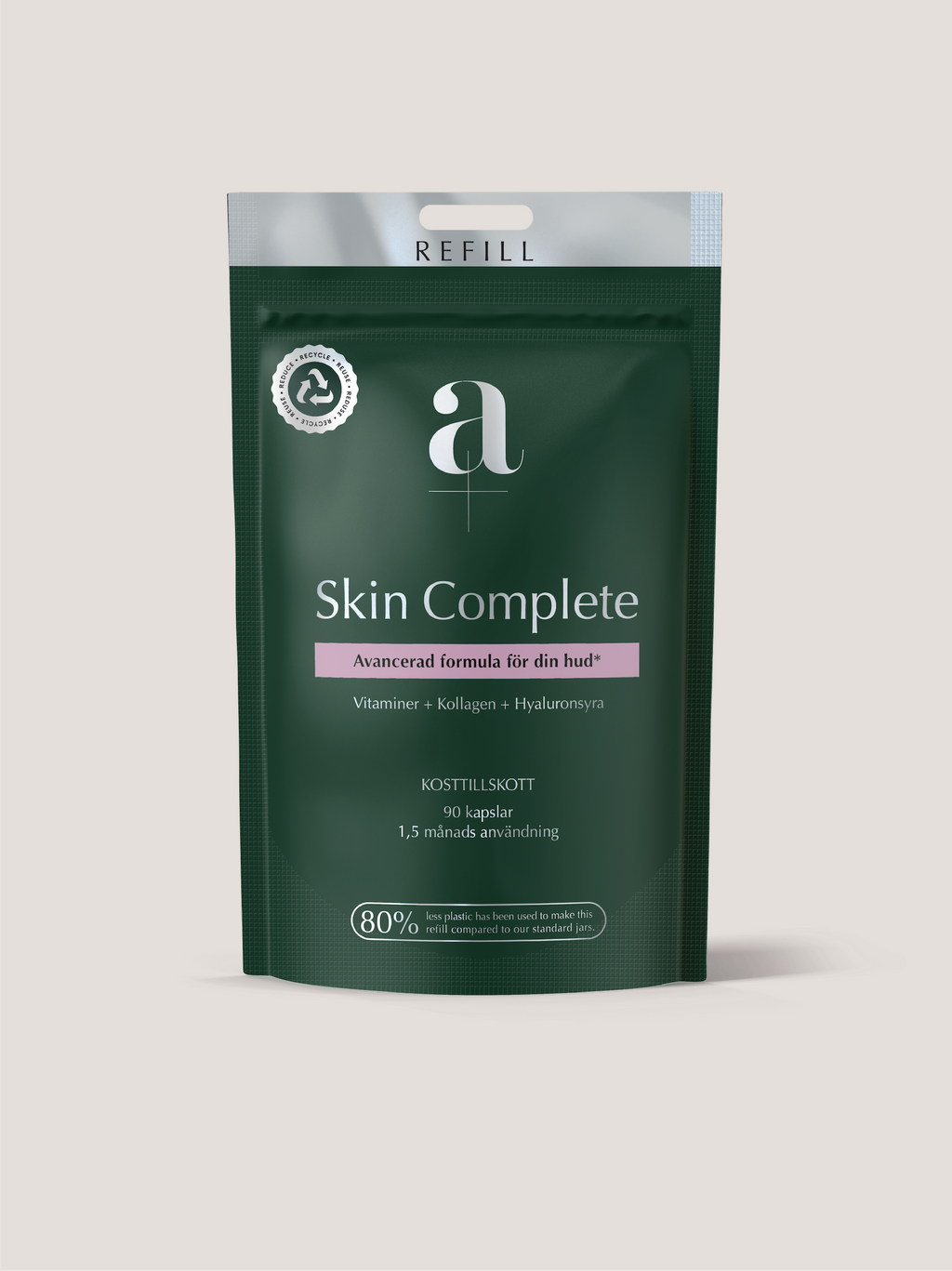 A+ Skin Complete i smidig och återvinningsbar refillpåse.